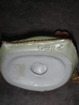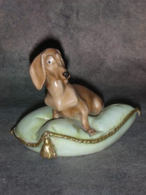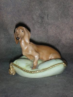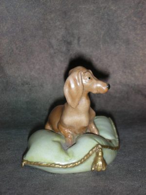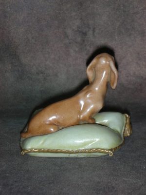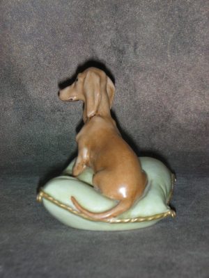 «Такса на зелёной подушке», Италия (Capodimonte), Высота 6,5 см., основание 7 на 5,5 см.
