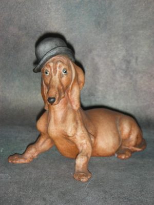 «Такса в цилиндре», Италия (Capodimonte) /Giuseppe Cappe/, Высота 10,5 см., длина 13 см.