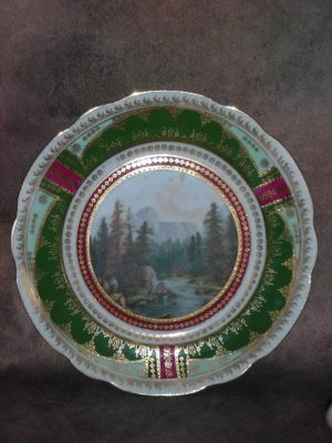 «Тарелка декоративная «Лесной пейзаж», Россия, Товарищество М. С. Кузнецова, конец 19 века начало 20 века, диаметр 18 см.