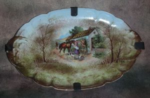 «Тарелка декоративная овальная с деревенским пейзажем», размер 30,5 на 19,5 см.