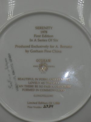 «Тарелка декоративная «Умиротворённость», США, компания GORHAM, 1978 г., изготовлено эксклюзивно для A.Borsato, диаметр 21,5 см.