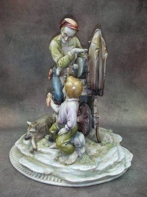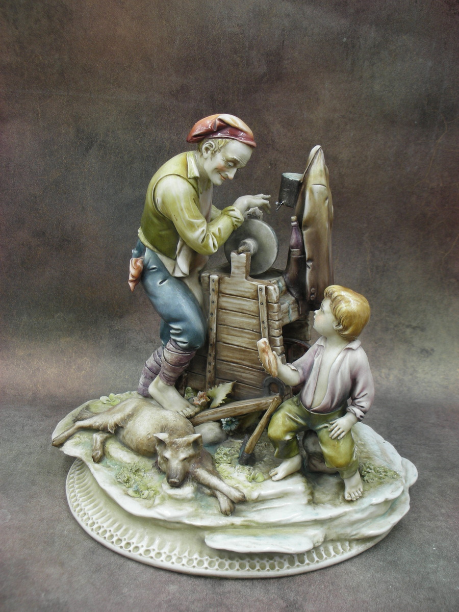 «Точильщик ножей», Италия (Capodimonte), фабрика Антонио Борсато (Antonio Borsato), Высота 19 см., основание 18 см. на 15 см.