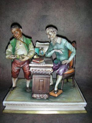 «У ростовщика», Италия (Capodimonte), фабрика Антонио Борсато (Antonio Borsato), Высота 20 см., основание 19 см. на 14 см.