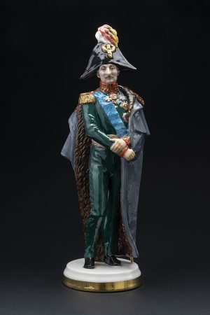 Витгенштейн Пётр Христианович — русский военачальник немецкого происхождения, генерал-фельдмаршал. главнокомандующий русско-прусской армией в Германии. Граф, Отличился В войнах с Францией (1805, 1806-1807), русско-турецкой войне 1806-1812 гг., русско-шведской войне 1808- 1809 гг. В Отечественной войне 1812 г. командовал 1-м пехотным корпусом, прикрывавшим петербургское направление. После смерти М.И. Кутузова был назначен главнокомандующим русско-прусской армией (1813), но после поражения в Лютценском сражении и Бауценском сражении заменен М.Б.Барклаем-де-Толли, главнокомандующий 2-й армией. В русско-турецкой войне 1828- 1829 гг. — главнокомандующий действующей армией.Высота 36 см.
