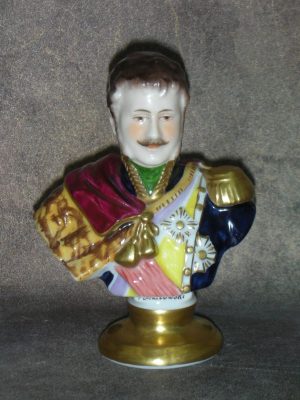 Витгенштейн Пётр Христианович — русский военачальник немецкого происхождения, генерал-фельдмаршал. главнокомандующий русско-прусской армией в Германии. Граф, Отличился В войнах с Францией (1805, 1806-1807), русско-турецкой войне 1806-1812 гг., русско-шведской войне 1808- 1809 гг. В Отечественной войне 1812 г. командовал 1-м пехотным корпусом, прикрывавшим петербургское направление. После смерти М.И. Кутузова был назначен главнокомандующим русско-прусской армией (1813), но после поражения в Лютценском сражении и Бауценском сражении заменен М.Б.Барклаем-де-Толли, главнокомандующий 2-й армией. В русско-турецкой войне 1828- 1829 гг. — главнокомандующий действующей армией.Высота 36 см.