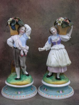 «Юноша и девушка с корзинами цветов» — пара, Франция, Высота 22 см.