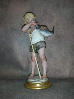 «Юный рыбак с уловом», Италия (Capodimonte),/Giuseppe Cappe Gelle/, Высота 20 см., диаметр основания 7 см.