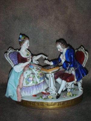 «За игрой в шашки», Франция, мануфактура Эдме Самсона, Высота 15 см., основание 15 см. на 12 см.