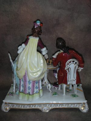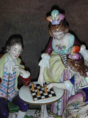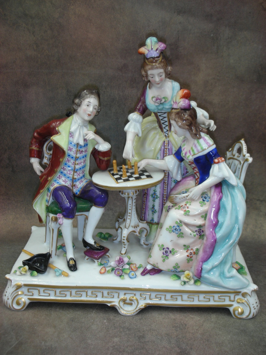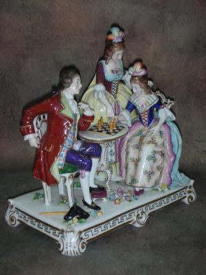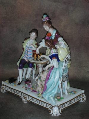 «За игрой в шахматы», Германия (Sitzendorf), Высота 22 см., основание 21 см. на 12 см.